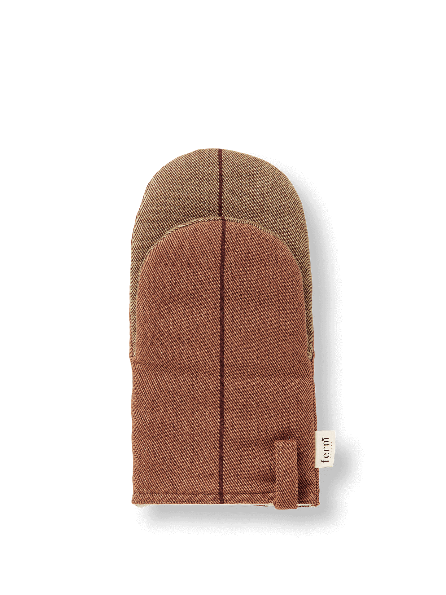The Ito Family presents a contemporary interpretation of traditional kitchen textiles. Crafted from organic cotton and filled with recycled polyester, this oven mitt features a delicate stripe design intersected by a two-tone twill weave. The versatile design suits left- and right-handed users, while the padded inner lining ensures protection from heat. Perfect for any kitchen, it adds a charming pop of colour to your space and provides everyday functionality.