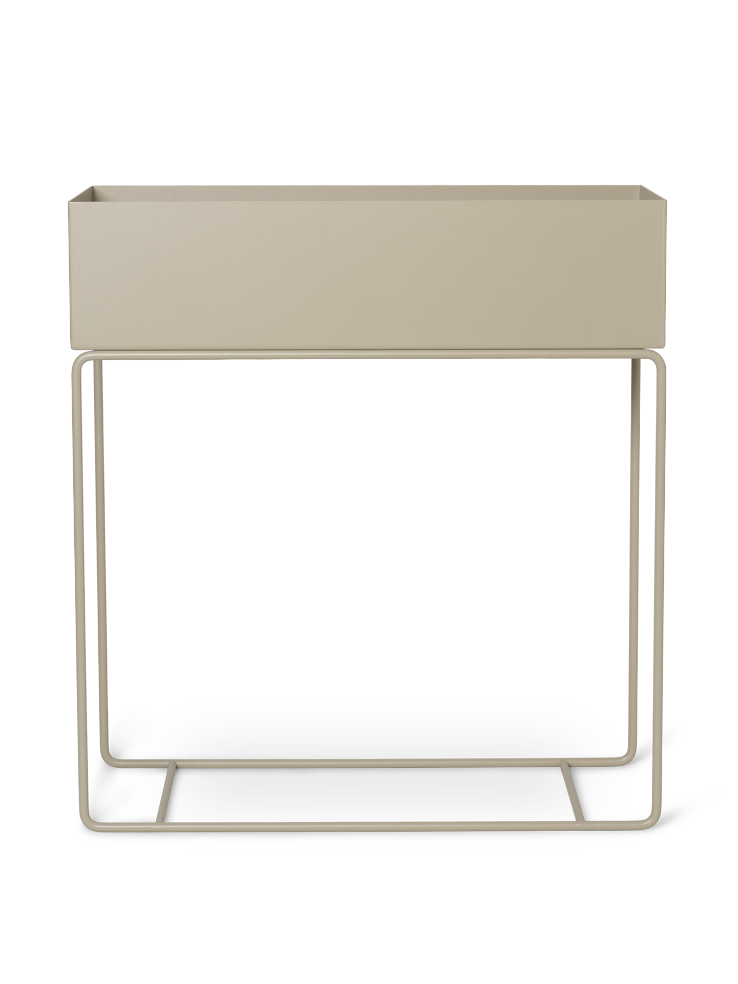 Our plant boxes can be used for decoration all over the house, as temporary storage in the hallway or as a divider to create cosy corners in larger rooms. They’re suitable for flowers, plants, books, toys and magazine – or maybe a little of each. Style them with delicate flowers in fine vases or try green plants in chunky clay pots and watch how the contrasts between the design and the added elements play. There’s an elegant and timeless aesthetic to the plant boxes from ferm LIVING. And the design has a striking and interesting contrast between the rectangular box on top and the thin metal legs. Plant boxes are available in several colours.
